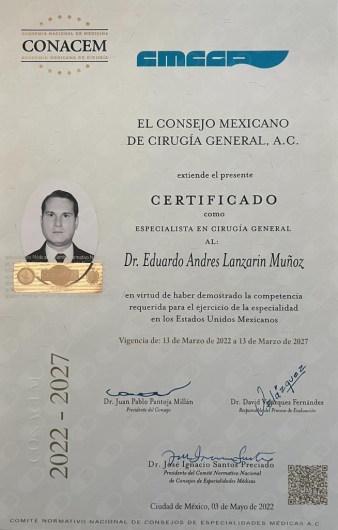 Soy el Dr. Eduardo Andrés, Cirujano General con formación en cirugía laparoscópica y certificado por el Consejo Mexicano de Cirugía General.